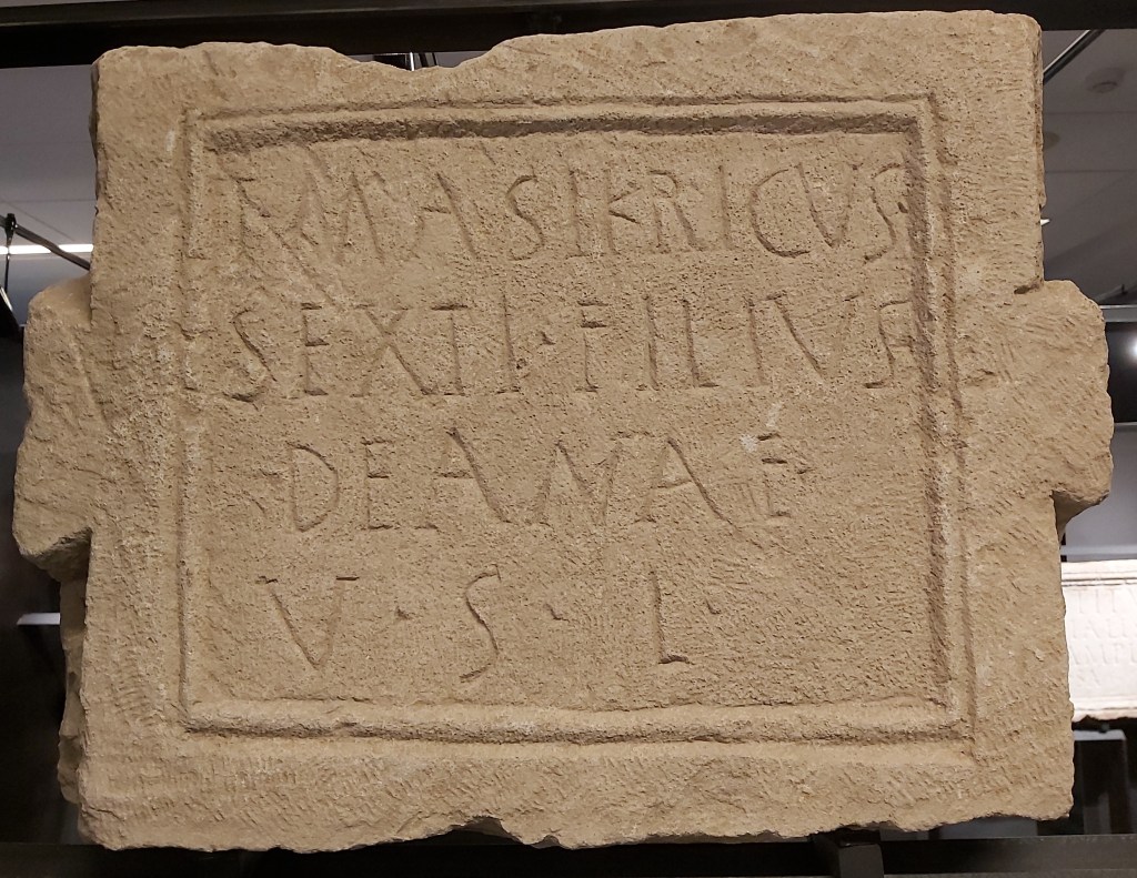 Finally, this spelling correction gives us further evidence for the decay of nasal sounds at the end of words. This appears to have been going on for some time. What we once full vowels and consonants may have become nasal vowels, which meant that they endured in writing. By this time though, the general confusion in spelling suggests that the nasal sounds had disappeared altogether. We even see them being written where they shouldn’t be, such as in Hercules non Herculens (#19). This loss was a factor in the decline of the case system; it meant that Latin amorem ‘love’ (accusative case) and amore (ablative case) ended up sounding the same, and it is simply amore that exists in Italian today.