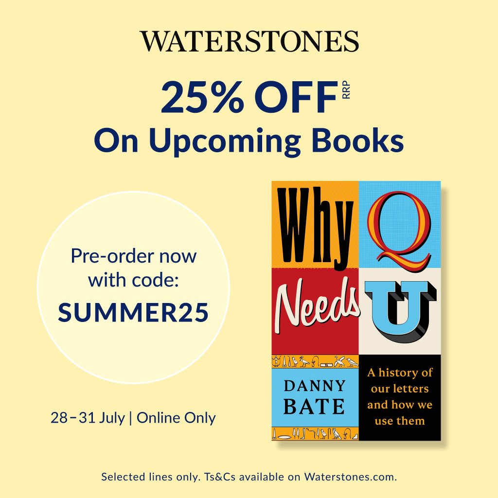 At time of writing (July 28th), I can in fact offer a discount for people who would like to join Sir Stephen and read the book themselves. If you are in the UK or in easy shipping distance thereof, the bookseller Waterstones now has a 25% discount on all upcoming books. Since Why Q Needs U is a 4000-year story, this is like getting 1000 years for free.