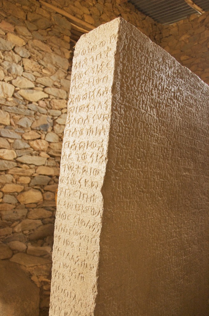 The considerable employment of Greek there, alongside other languages, is perhaps best demonstrated by the downfall of Kush. The kingdom was conquered in the mid-4th century AD by Aksum, and the gloating victors set up inscribed thrones and standing stones across their enlarged kingdom. To ensure Aksum’s subjects could understand their betters’ declarations, such texts are often multilingual. We would expect to see a language like Ge’ez, a historical and liturgical language of Ethiopia, but Greek appears on them too.