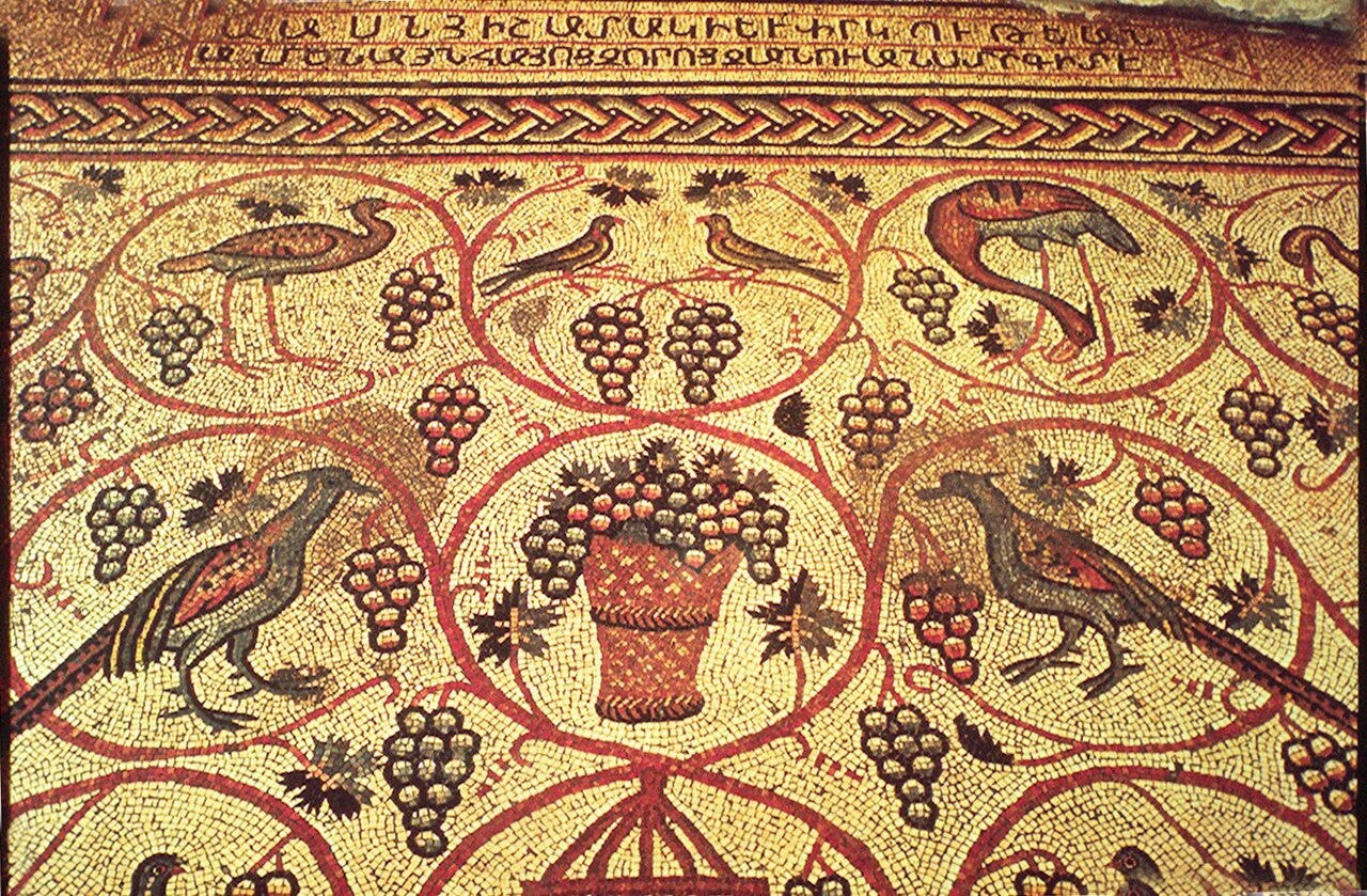 Besides, Egypt was a powerhouse of antiquity and an obvious destination for people travelling, trading and migrating. As I’ve sought to demonstrate in many of my articles, people in the ancient world really did travel around, and left samples of their languages behind. For example, a beautiful mosaic of birds entwined in vines, found in Jerusalem and dated to the 6th century AD, includes a strip of early Armenian writing at the top: